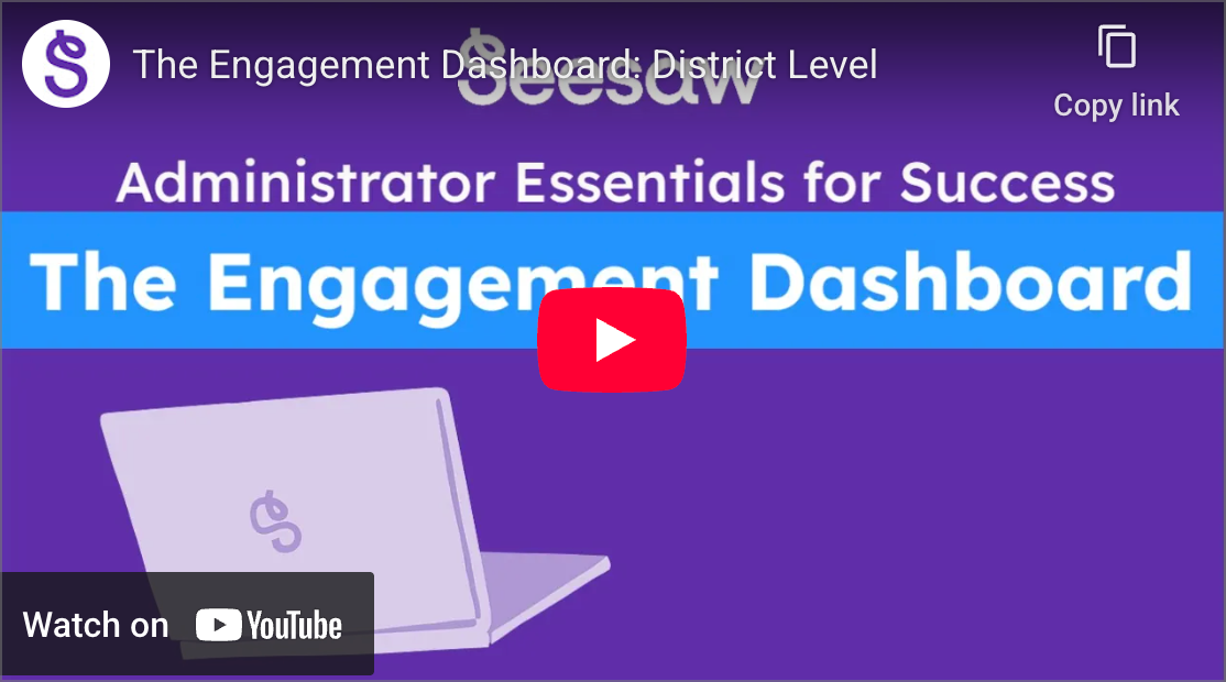 Note: The District Engagement Dashboard is available only with Seesaw Instructions & Insights District purchases.