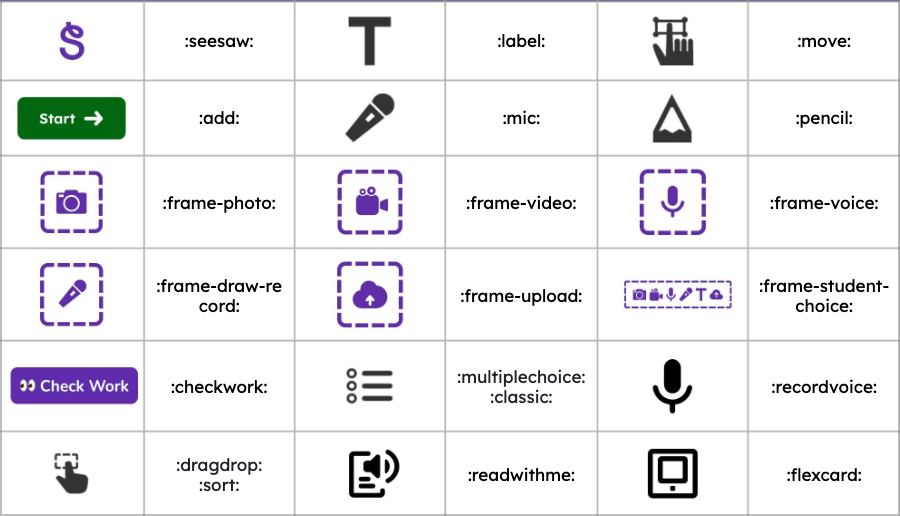 Utilizza questi collegamenti per creare icone di Seesaw nelle tue istruzioni per l'attività.