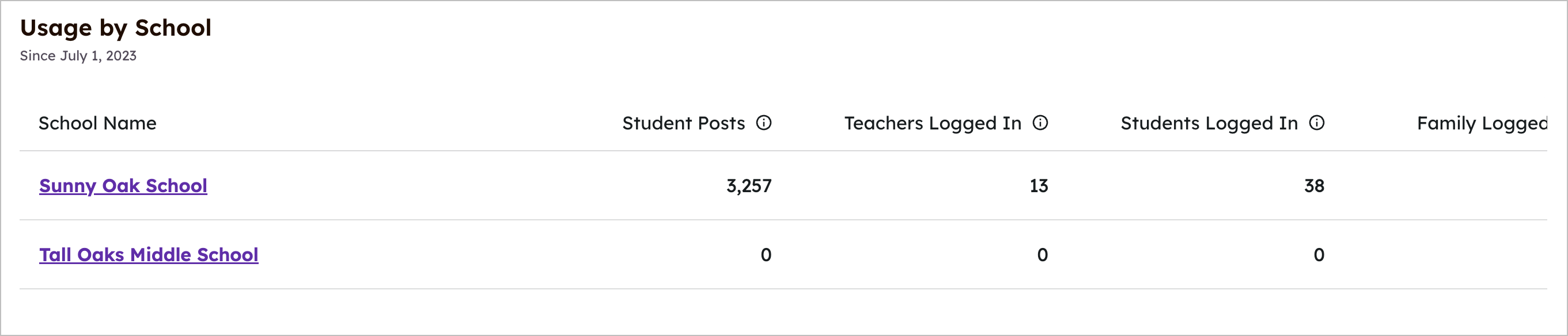 우리는 '24 학년도로 돌아가는 것에 대한 일부 흥미로운 새로운 변경 사항을 만들었습니다. 이러한 변경 사항은 교사, 학생 및 가족 참여에 대한 가장 통찰력있는 데이터를 제공하며 역할, 학교 및 활동별로 분해할 수 있습니다.