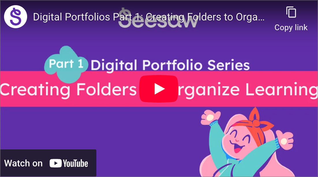 Als je het werk van leerlingen wilt organiseren op vakgebied of leerdoelen, kun je mappen aanmaken in je klas. Mappen zijn zichtbaar voor leraren en leerlingen, evenals voor familieleden als je hen hebt uitgenodigd voor je klas. Volg de onderstaande stappen om mappen in Seesaw in te stellen en te gebruiken.