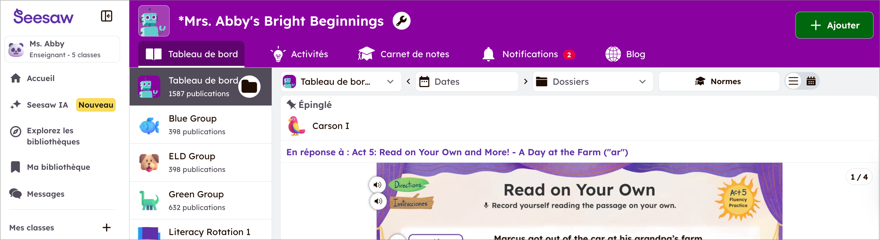 ஆசிரியர்கள் தங்கள் வகுப்பில் உள்ள ஒவ்வொரு மாணவருக்கும் விருப்ப மொழியை தேர்ந்தெடுக்கலாம், இது குடும்பங்களுக்கு Seesaw ஐ எளிதாக அணுக உதவும். மாணவர்கள் தங்கள் விருப்ப மொழி அமைப்பை கணக்கு அமைப்புகளில் காணலாம். ஆனால், அவர்கள் தங்களுடைய விருப்ப மொழியை மாற்ற முடியாது.