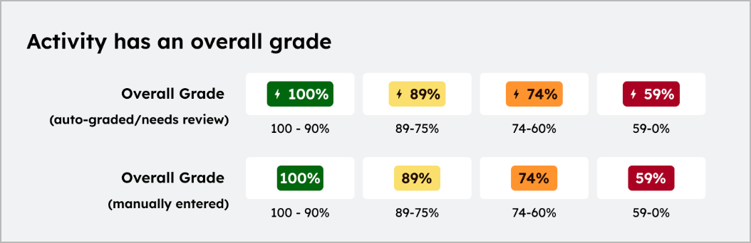 สถานะการทำกิจกรรมและเกรดโดยรวมจะแสดงดังนี้: