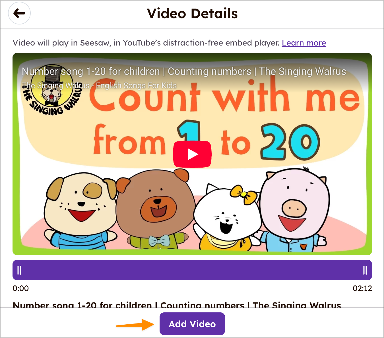 - วิดีโอจะเล่นภายใน Seesaw ทำให้นักเรียนอยู่ในที่เดียวโดยไม่มีแท็บหรือแอปภายนอก